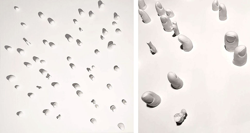 FLEXIBILE GRENZEN / 2013 / Gießkeramik, Holz, Acryl /40 x 40 x 7 cm