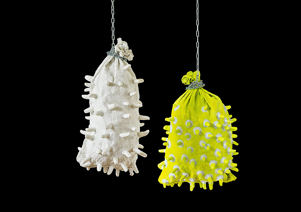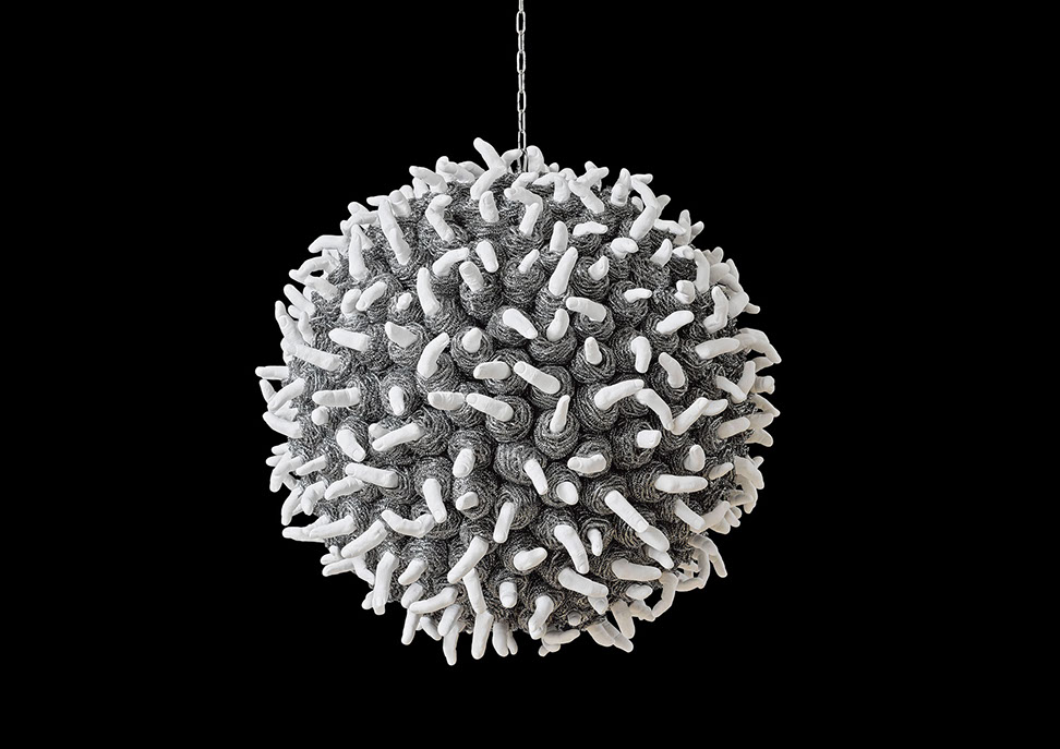 FRUTTI DEL MALE / 2015 / Topfkratzern, Gaze, Styropor, Giesskeramik, Montagepaste, Stahl / Durchmesser 70 cm