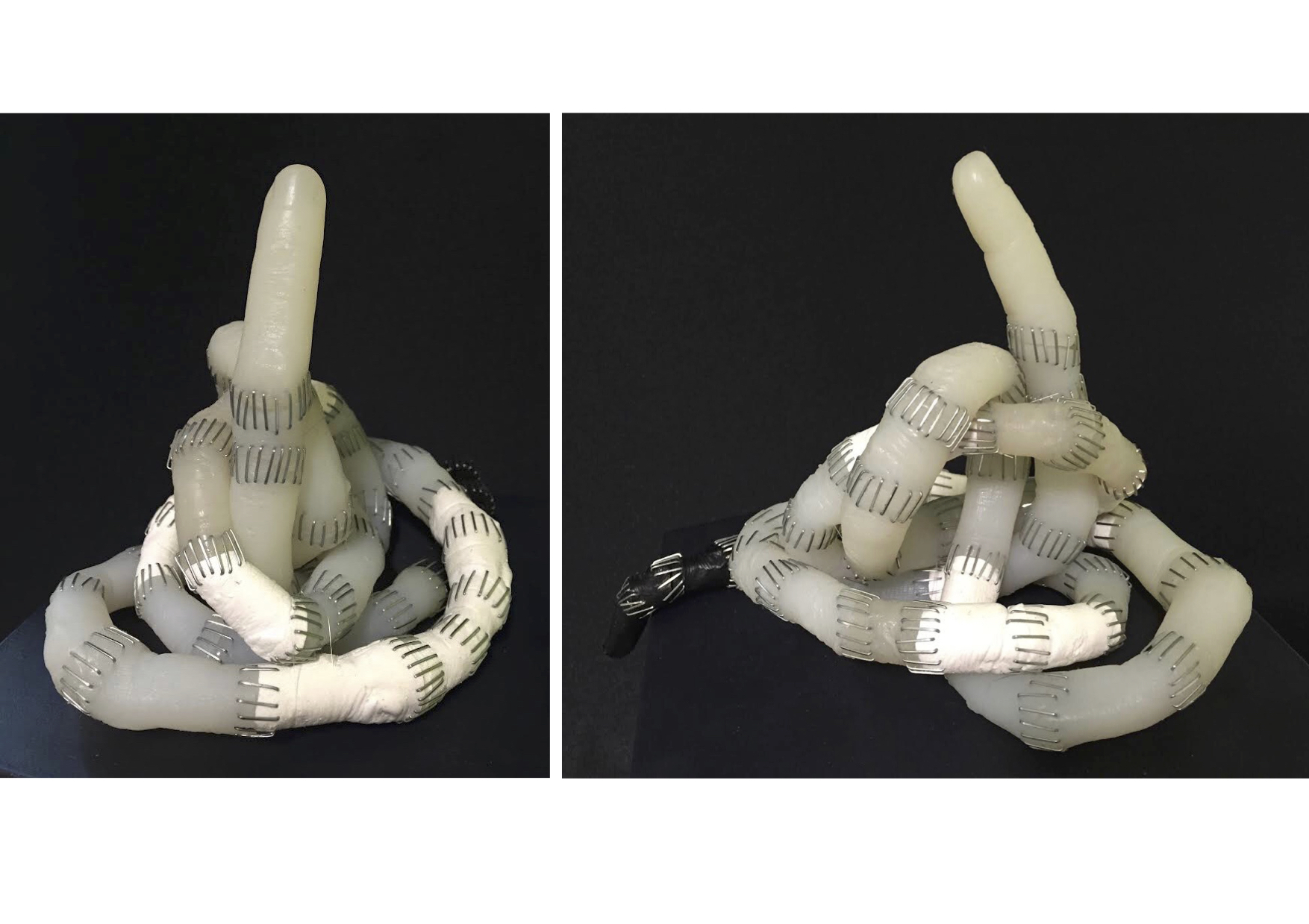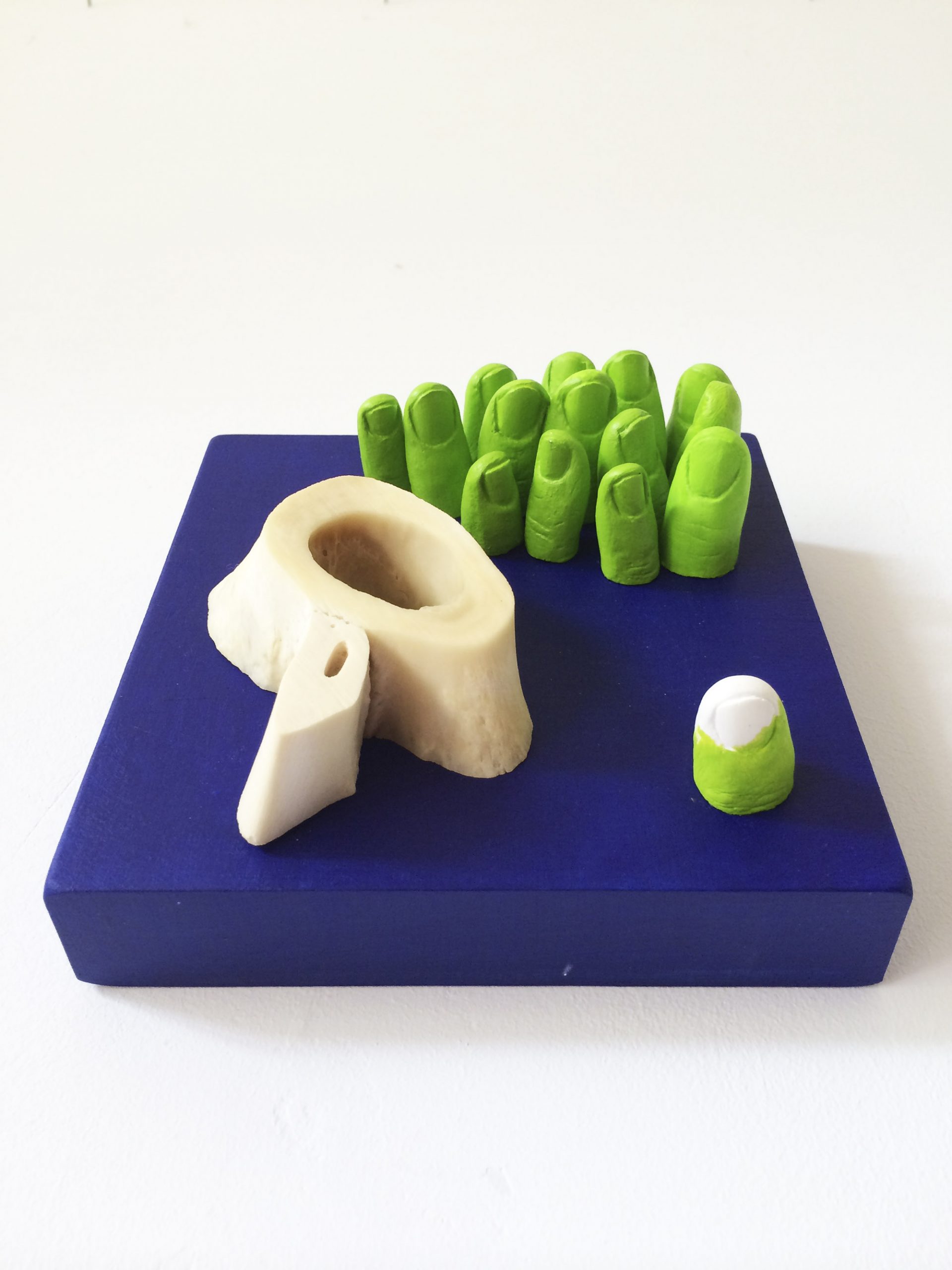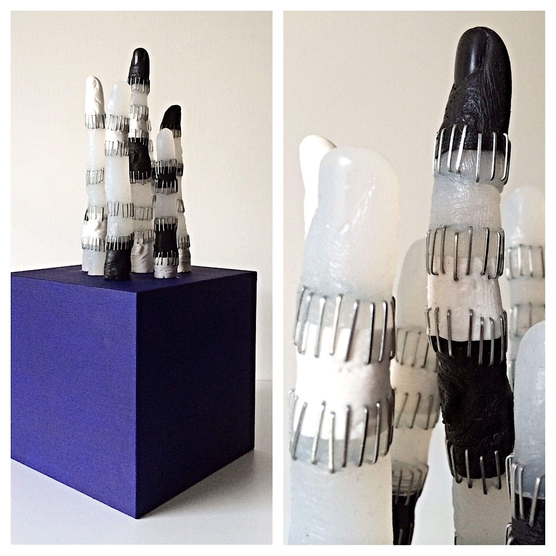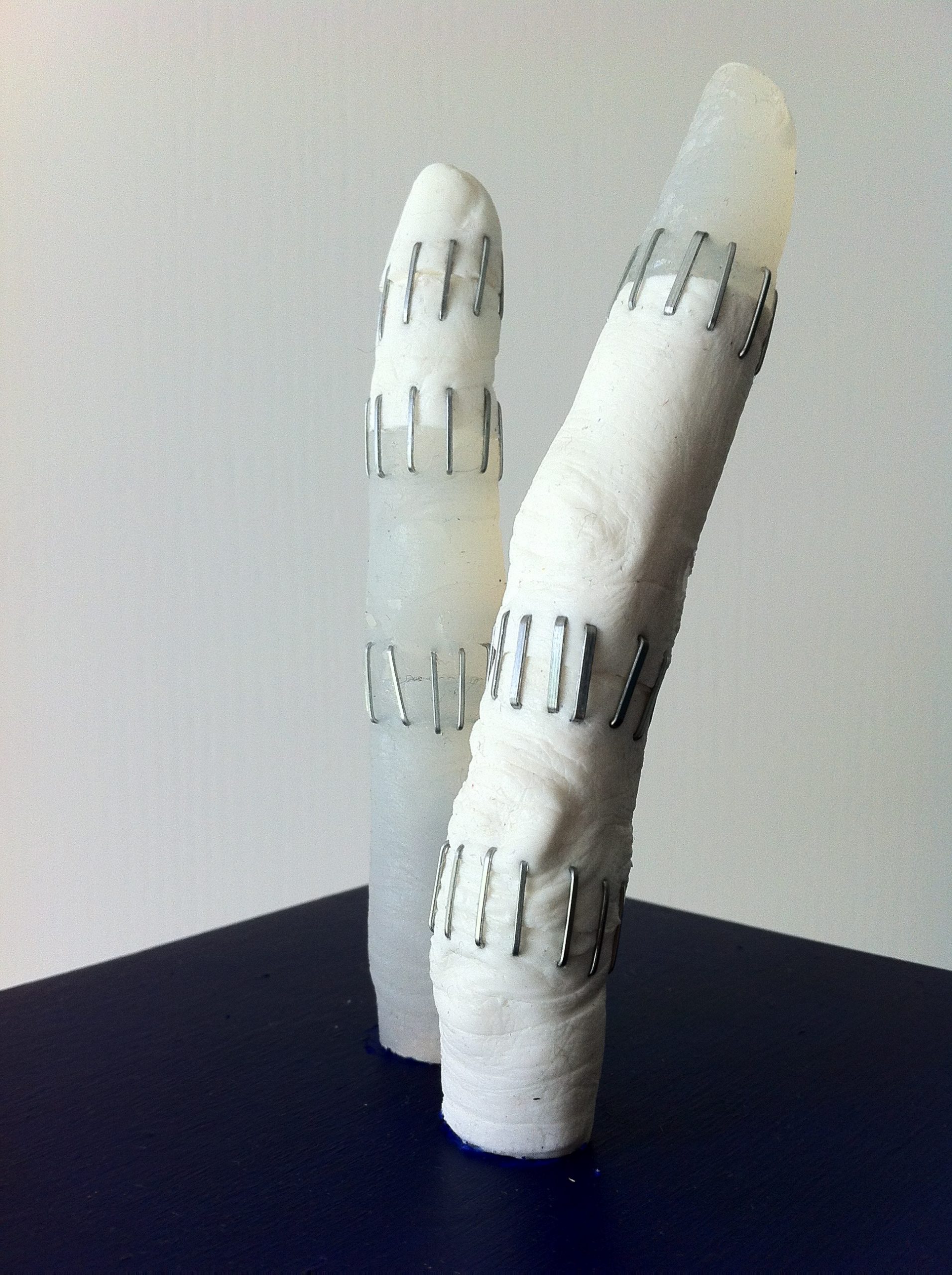 EXOGAMIE / 2014 / Silikon, Metallklammer, Holz / 15x28x15cm