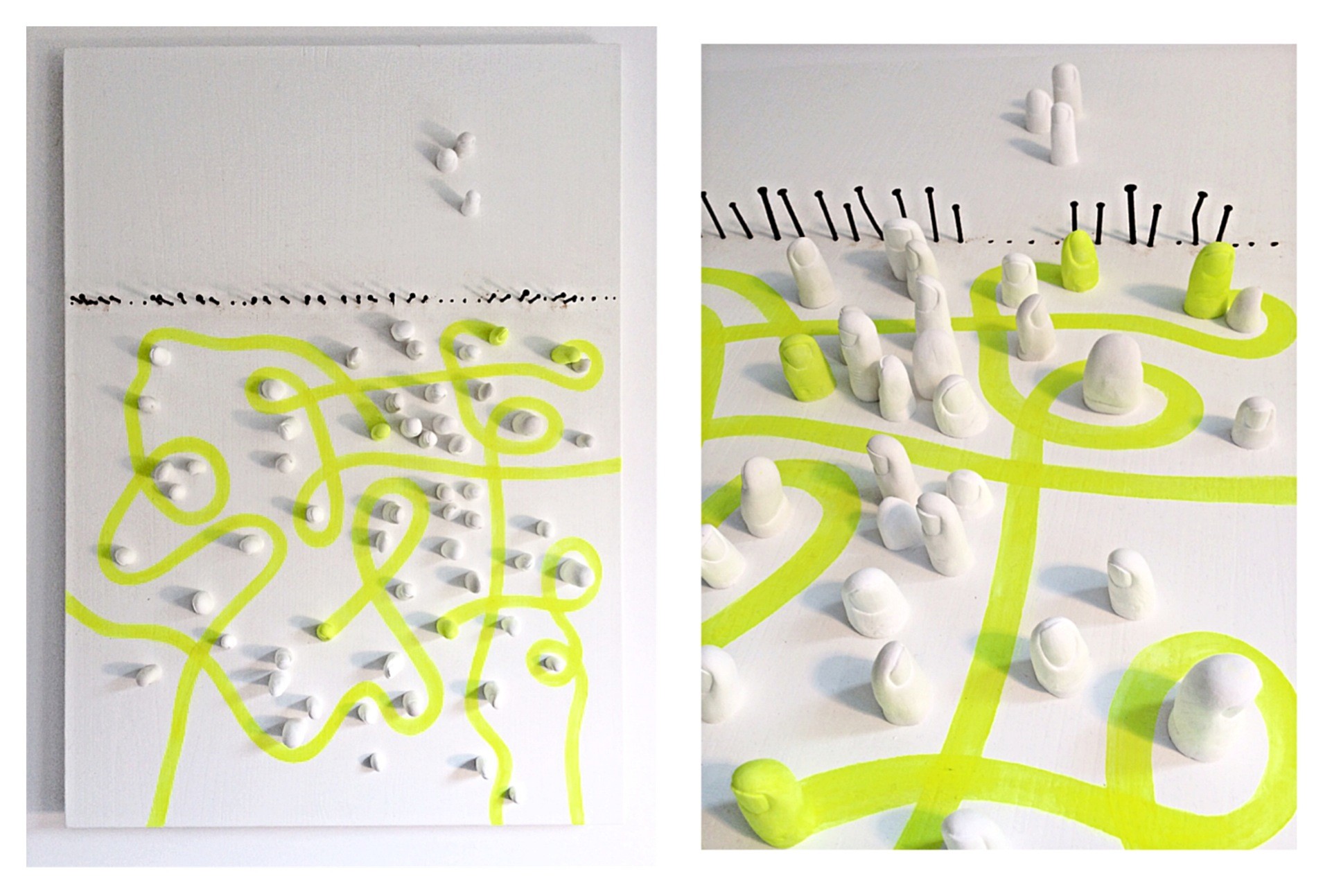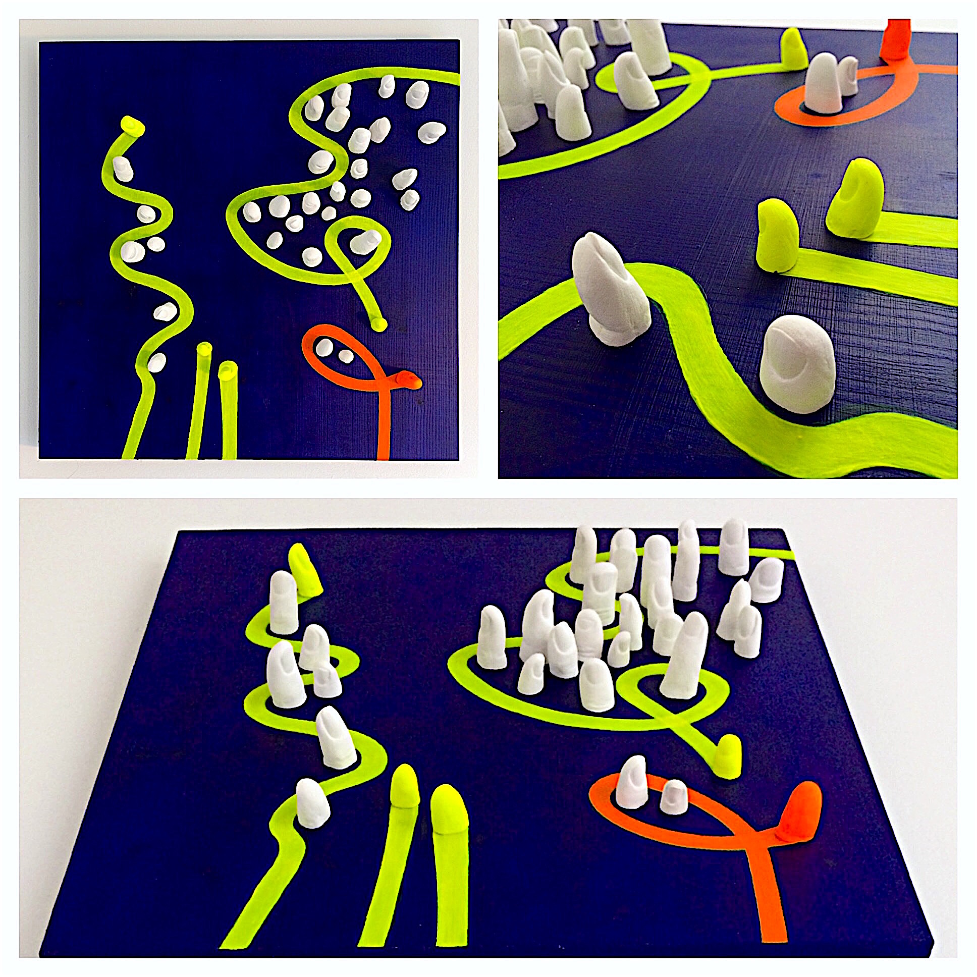 2013 / Gießkeramik, Holz, Acryl /40X40X6 cm