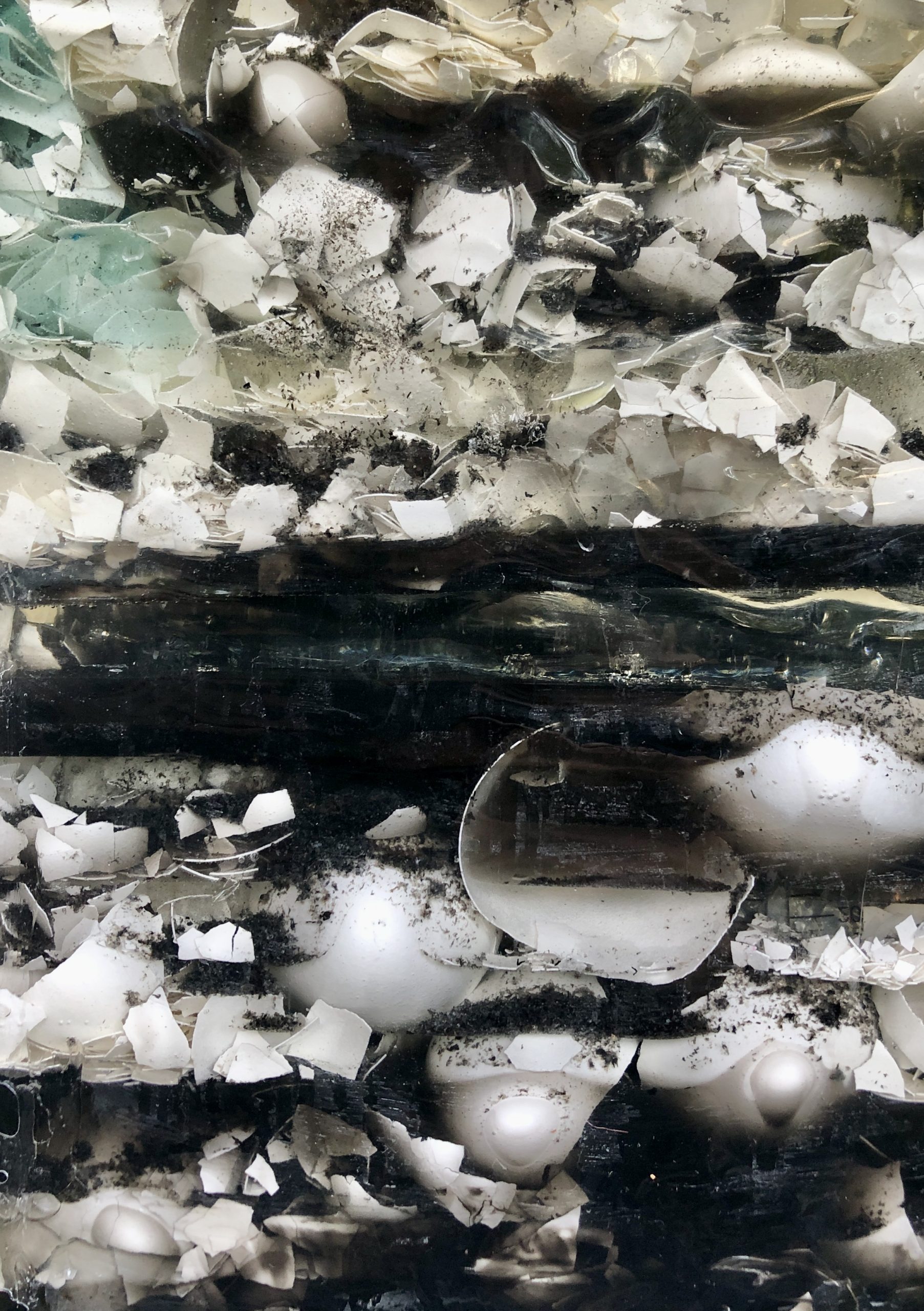 SEDIMENTE I / Detail / Epoxidharz, Eierschalen, Asche