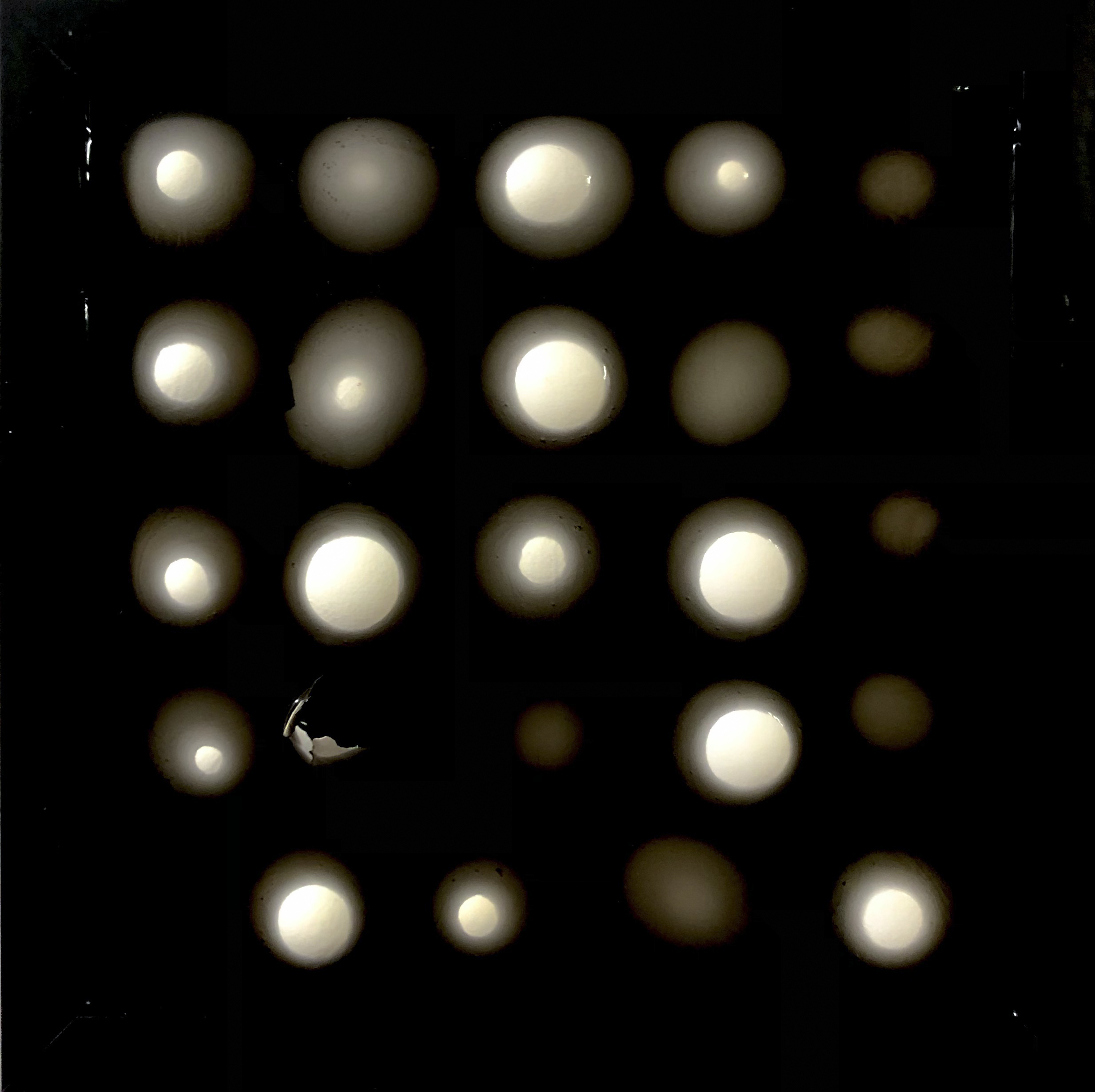ABERRATIO VI / 2022 / Epoxidharz , Harzfarbe, Eierschalen / 26 x 26 x 5 cm