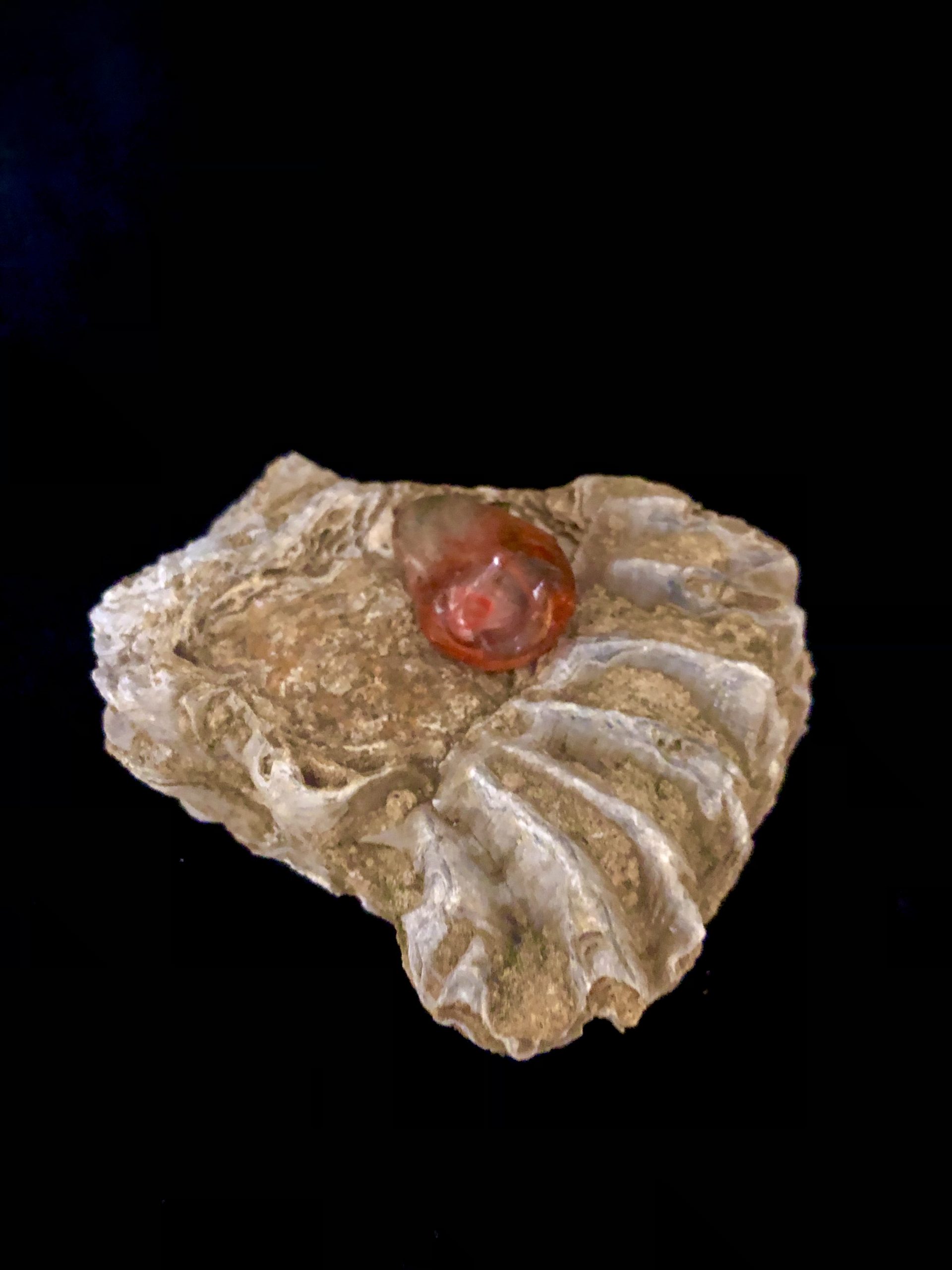 FRUCHT DES EDENS II / 2022 / Fossil, Stein, Harz… / 11 x 10 x 6 cm