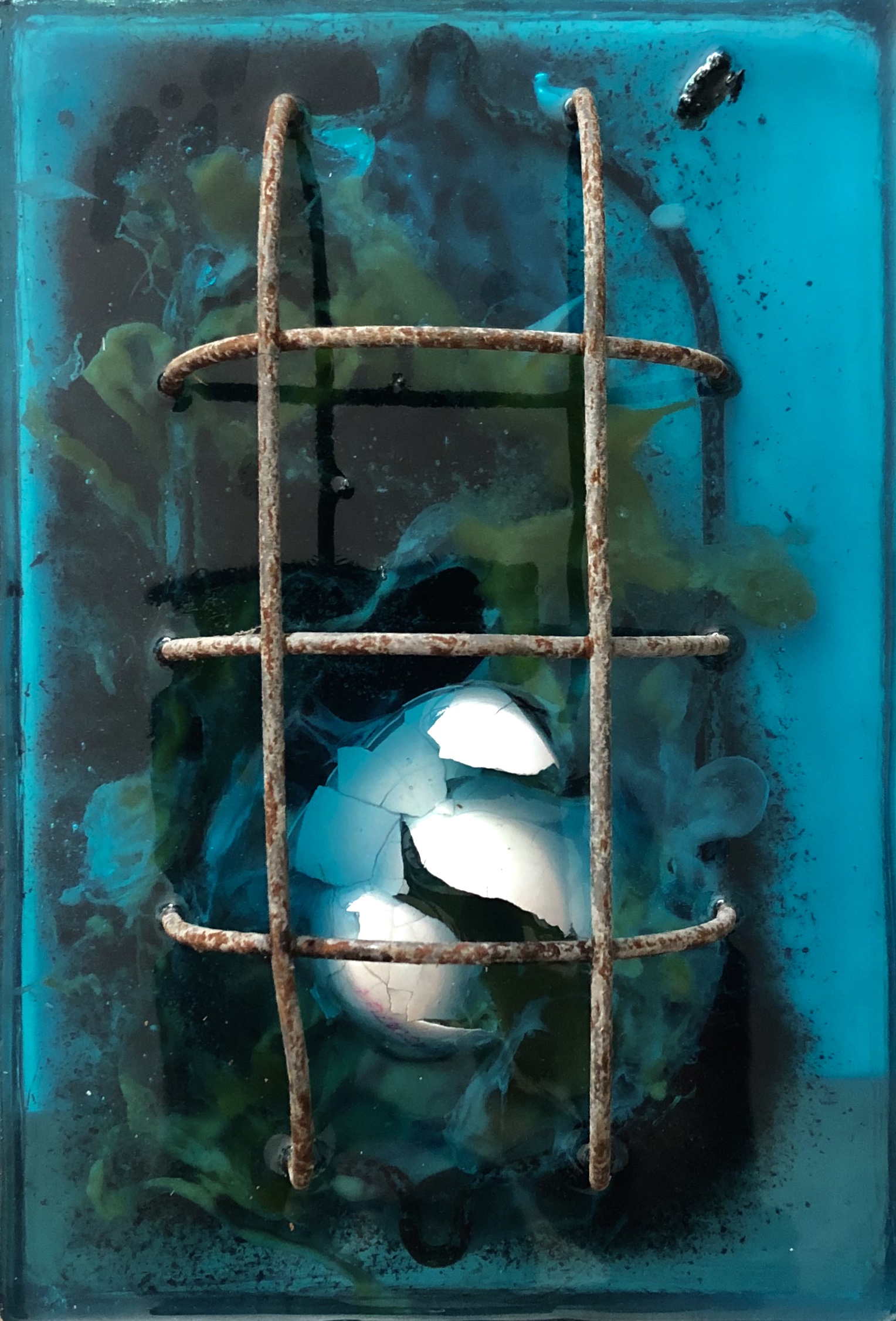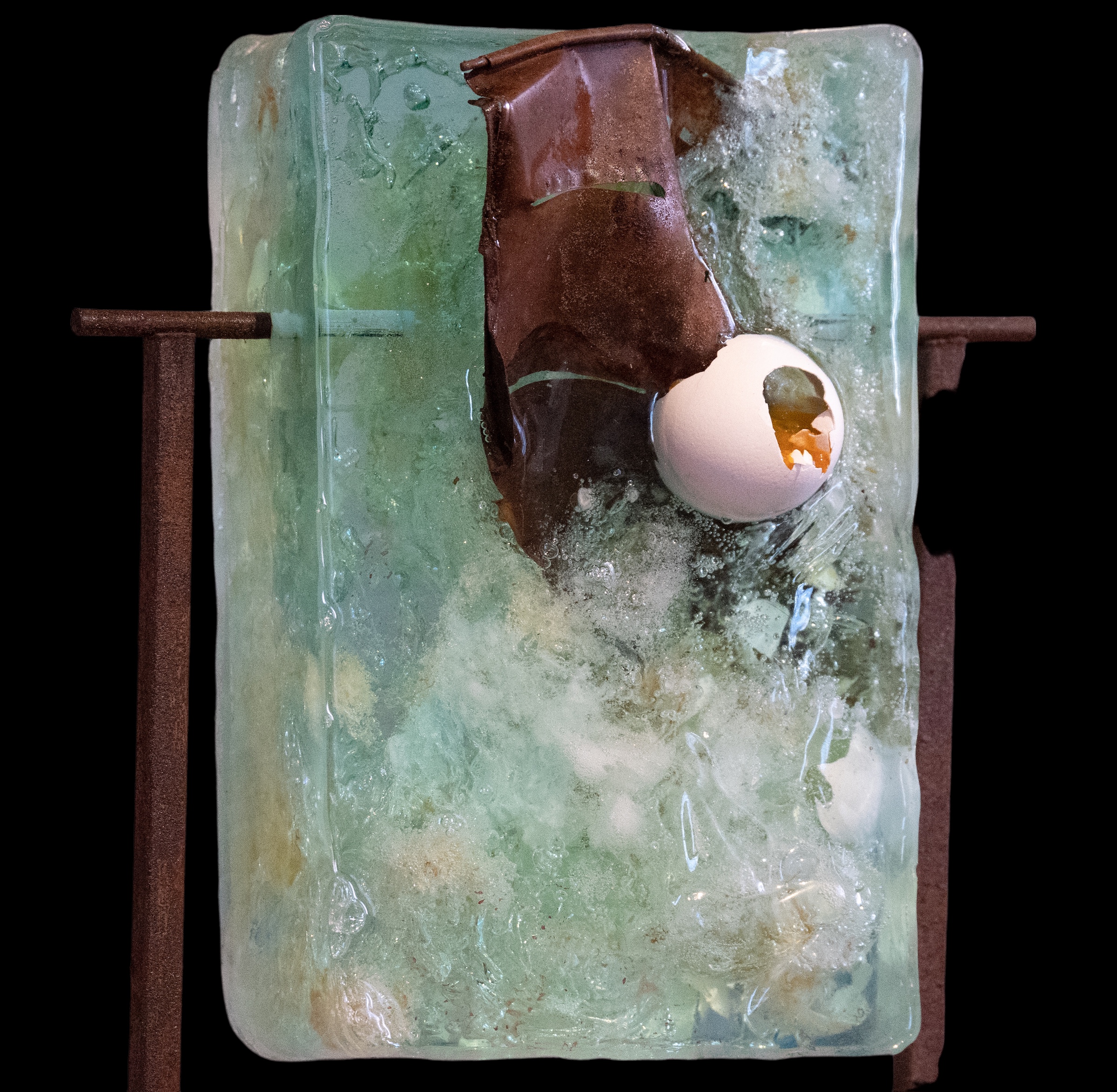 FREI / 2020 / Ei, Eierschale. Asche, Eisen / 28x15x8 cm