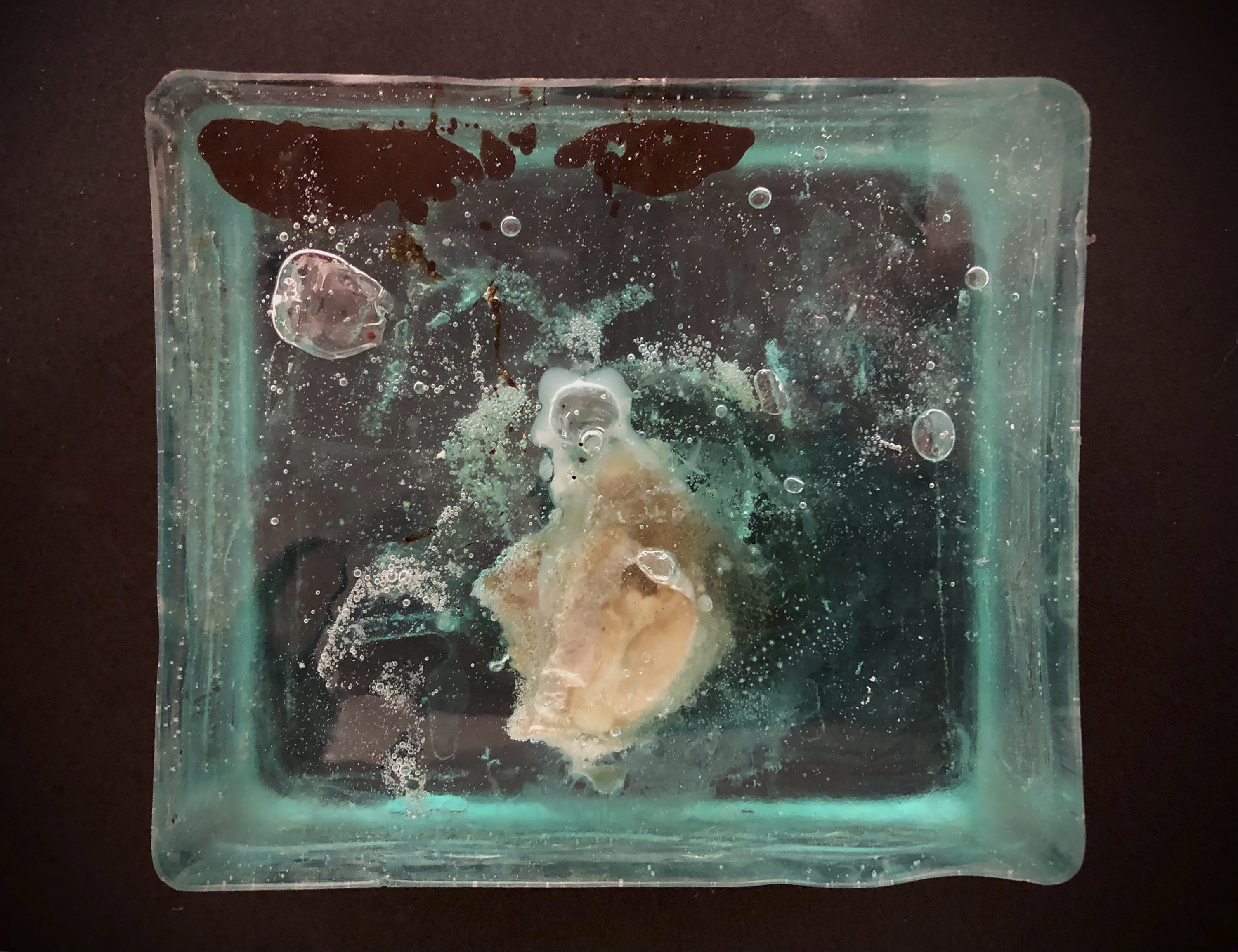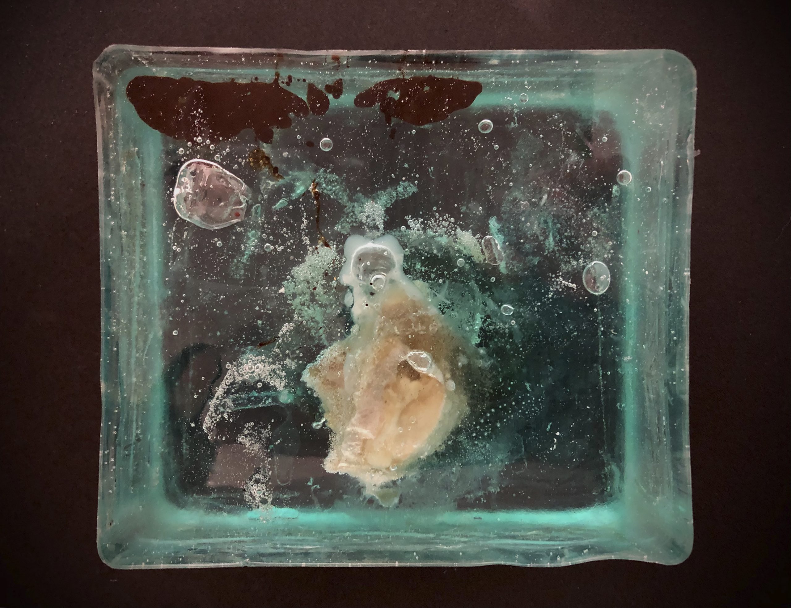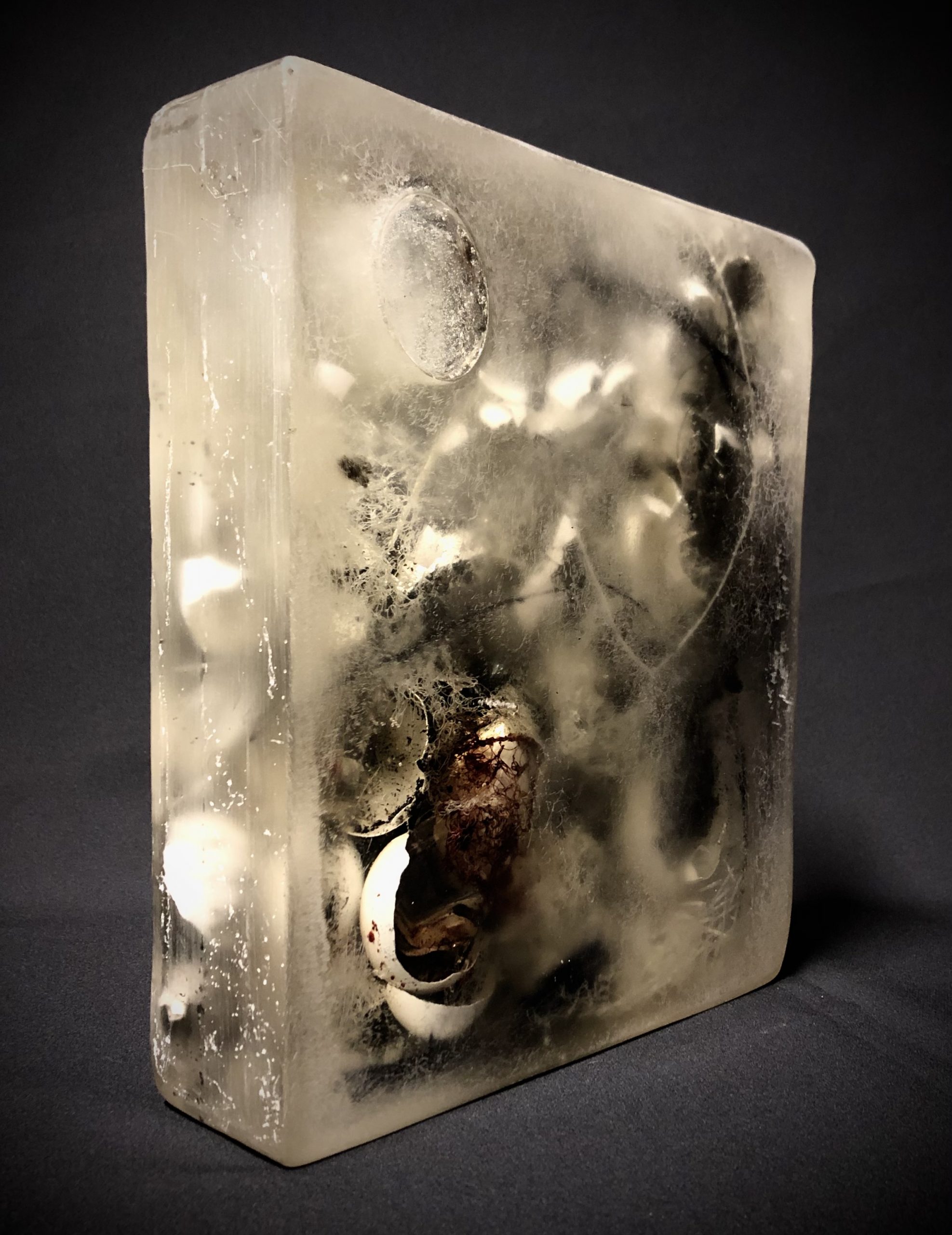 THE BIG SCHORT DIALOGUES II / 2021 / Epoxidharz, Eierschale, Asche, Blut (B+) / 21x23x8 cm
