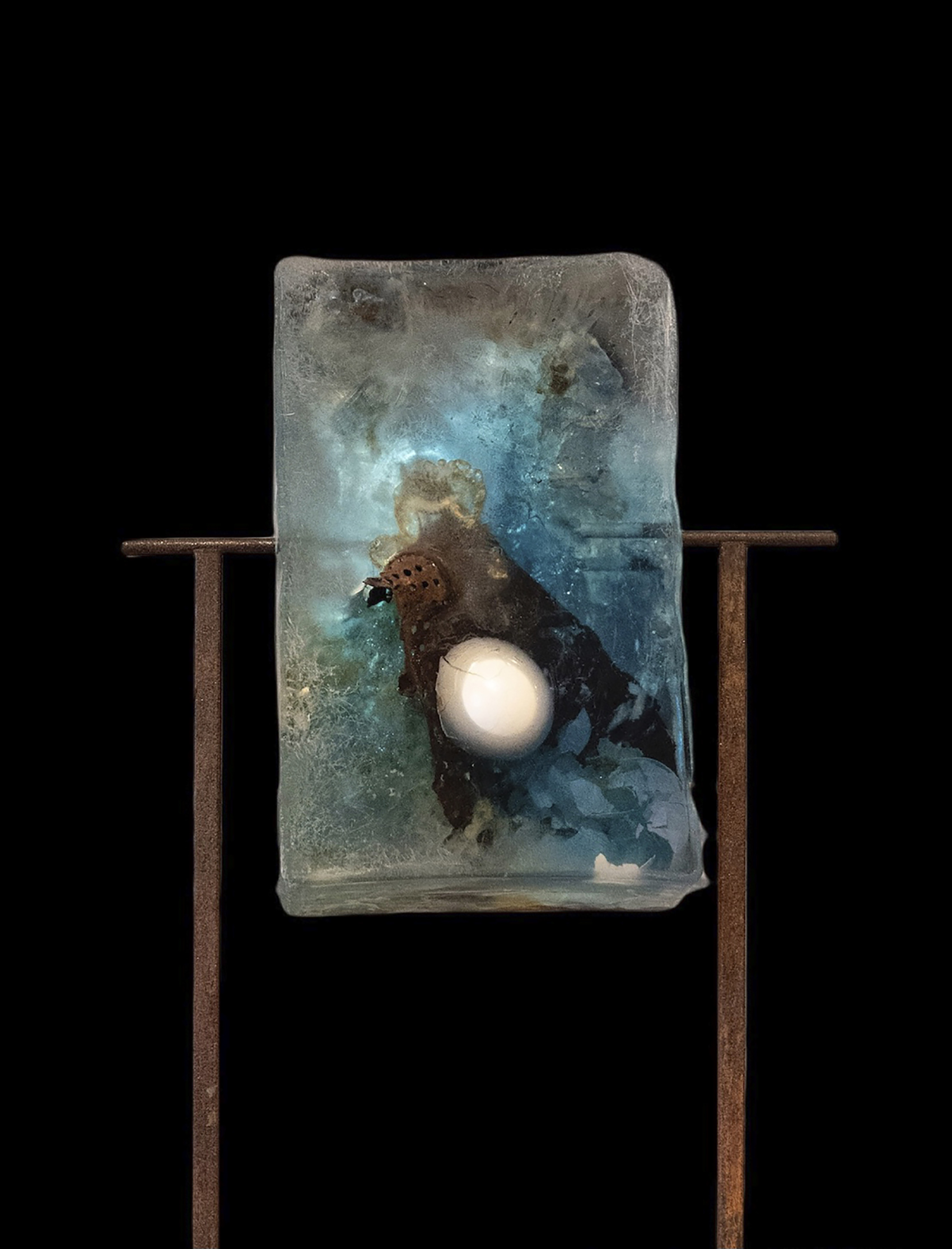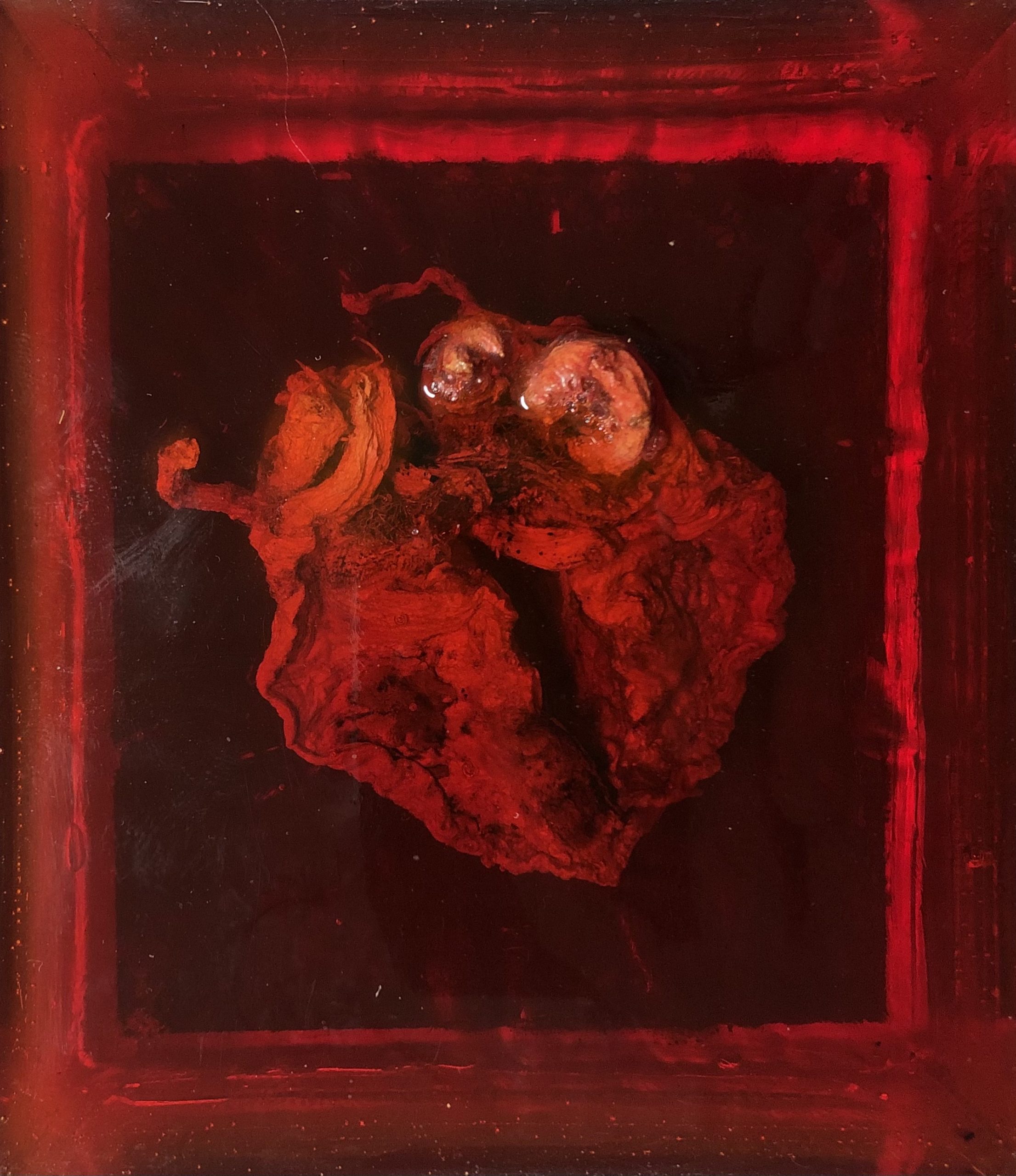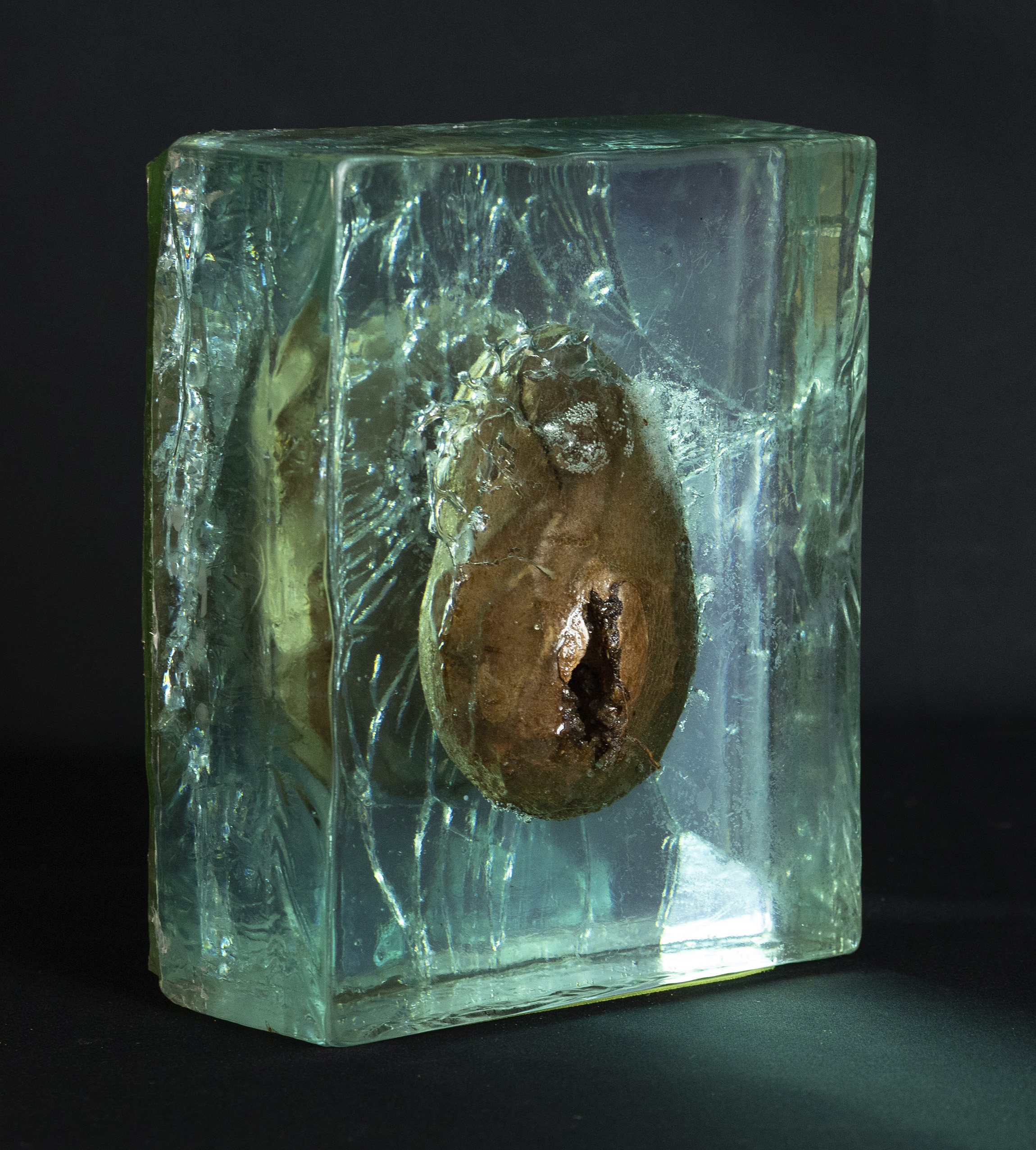 THE BIG SCHORT DIALOGUES II / 2021 / Epoxidharz, Eierschale, Asche, Blut (B+) / 21x23x8 cm