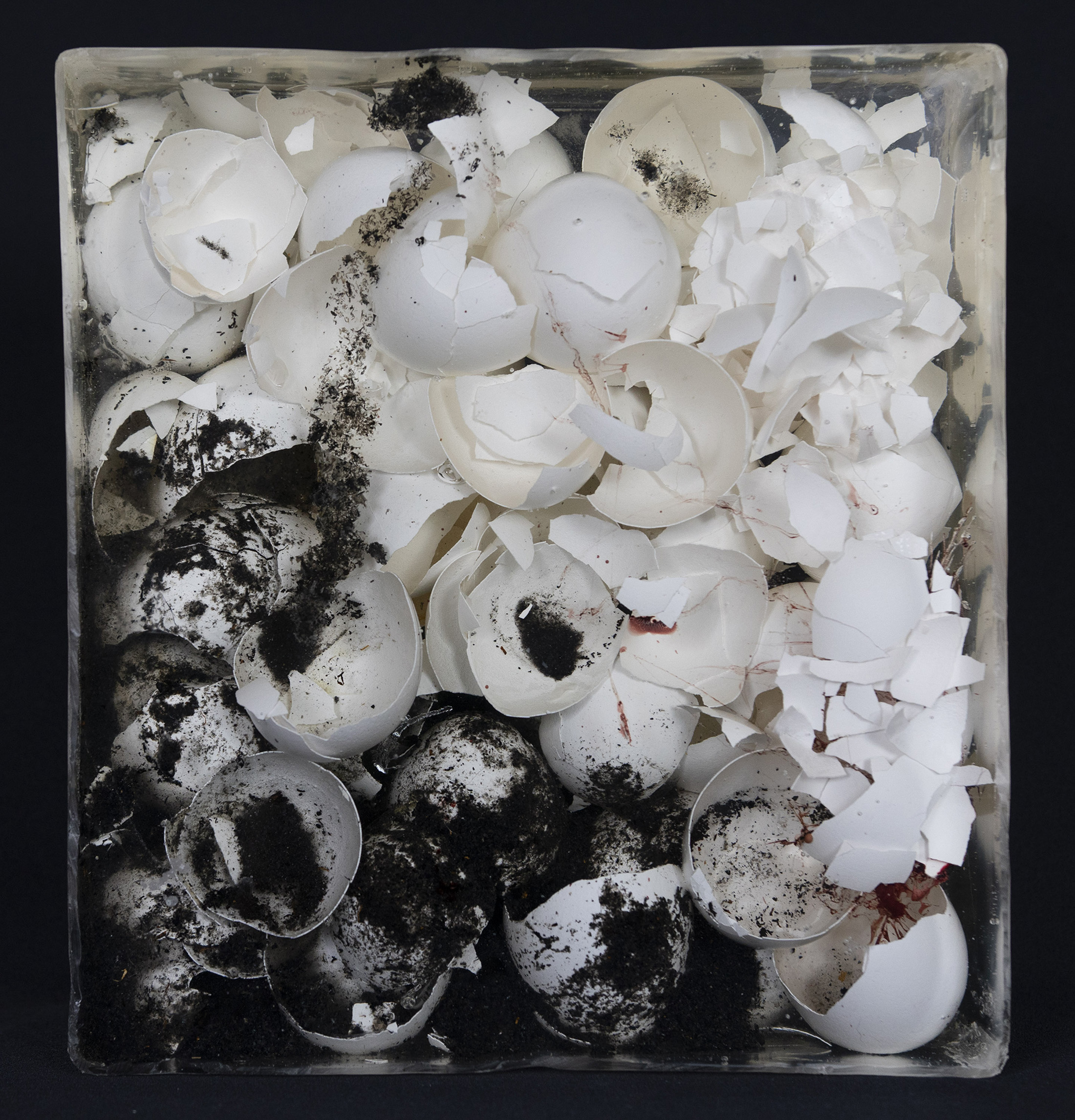 THE BIG SHORT DIALOGUES / 2020 / Eierschalen, Asche, Blut (B+), Harz / 21x23x8 cm