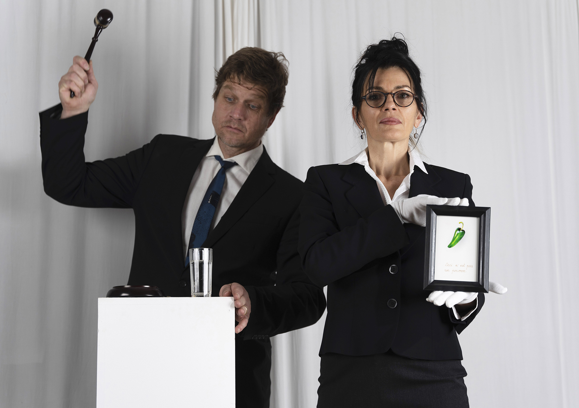 Eine weitere Irritation bei dem Publikum wird provoziert von einer gänzlich unverständlichen Ungerechtigkeit. Die Bildern können nur diejenigen ersteigern, die das falsche Geld erhalten haben.